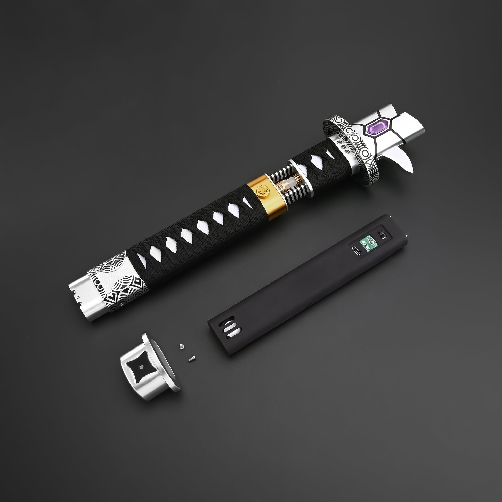 Welcome to the Saberbelt Armory and our presentation of the Dark Katana Saber by TXQ Sabers. This is a custom machined piece that is absolutely fantastic. Installed with quality Electronics and a Sturdy Chassis to protect said electronics, this also features a color changing setup for you to customize and have fun with. Check out the sword style blade and matching sheath that are included in your purchase. This piece is fantastic and super bright when lit, hours of fun to be had by all.